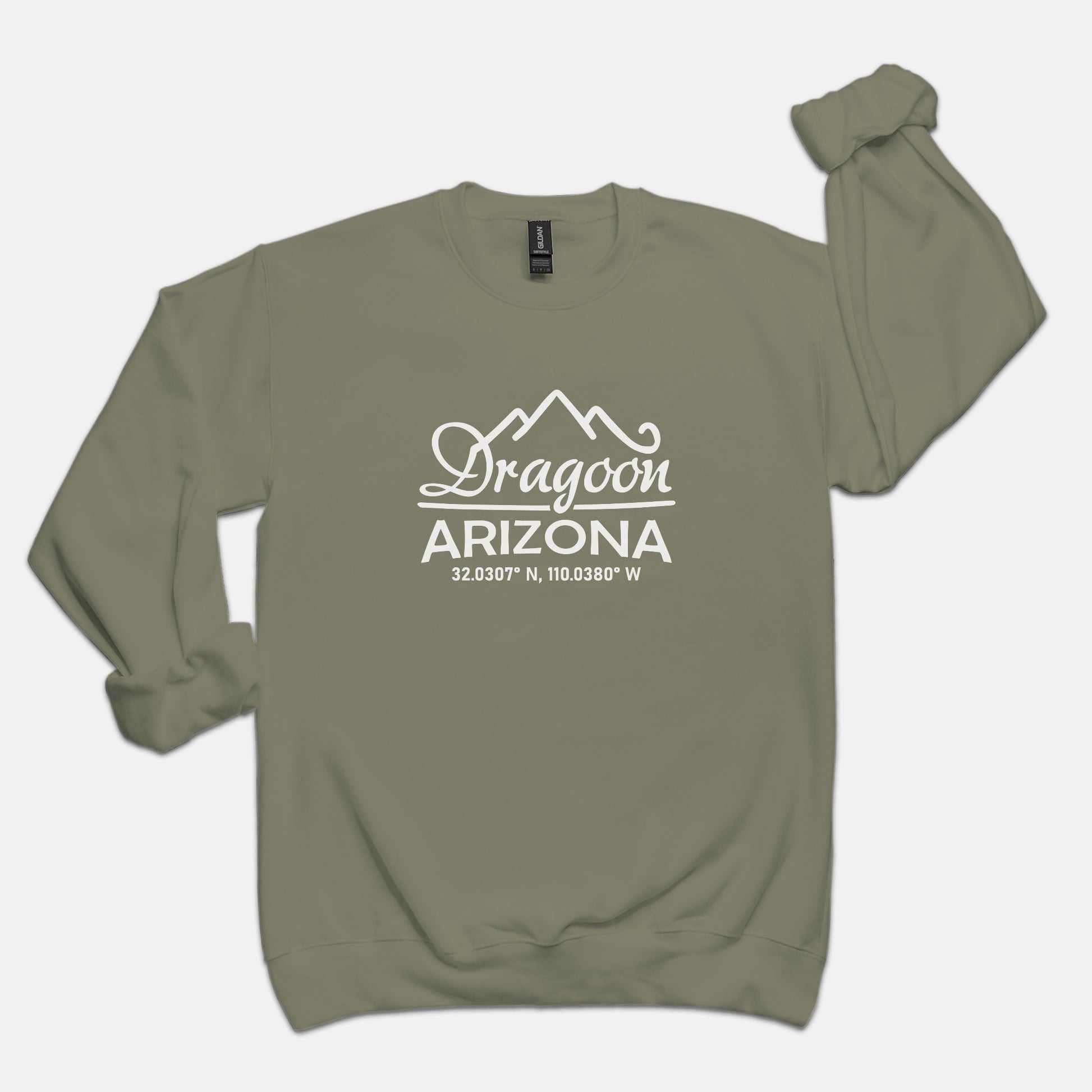 Stay warm and stylish with the Dragoon Arizona Classic Sweatshirt, featuring a bold yet timeless Dragoon, Arizona logo. Crafted from a soft, mid-weight fabric, this sweatshirt offers all-day comfort and warmth without feeling too heavy. Its classic fit makes it perfect for layering or wearing solo, whether you're out exploring or just relaxing. Rugged yet refined, it's the perfect way to show off your Dragoon pride in any season.