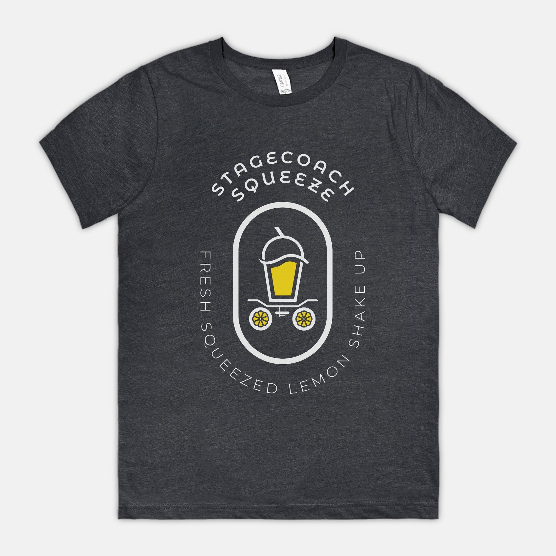 Quench your thirst for style with this fun t-shirt featuring the logo for Stagecoach Squeeze, the Dragoon General Store's signature drink.